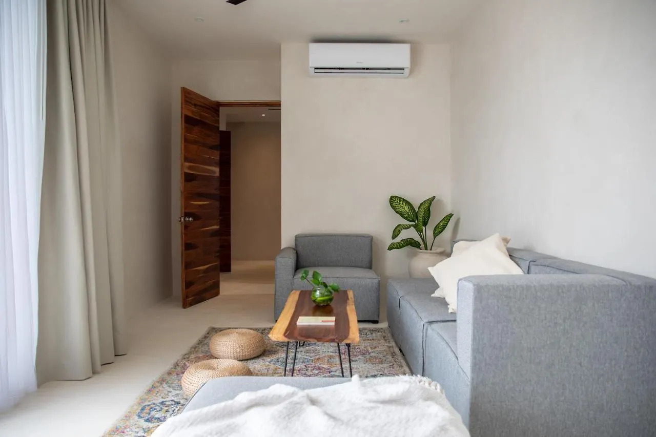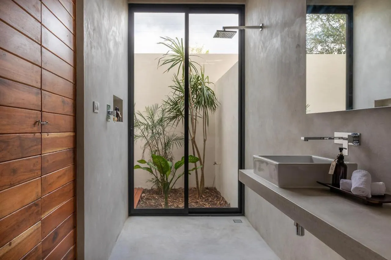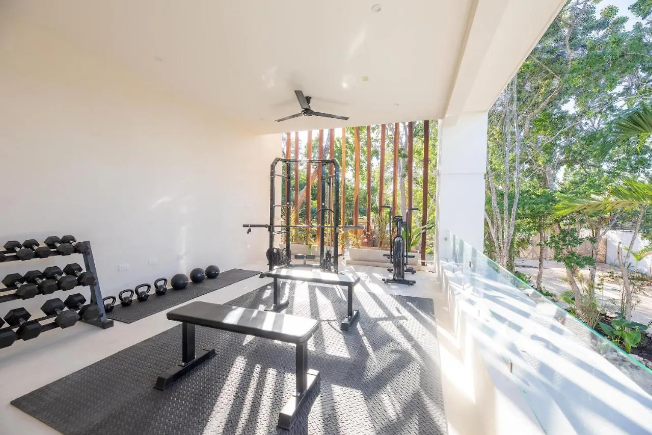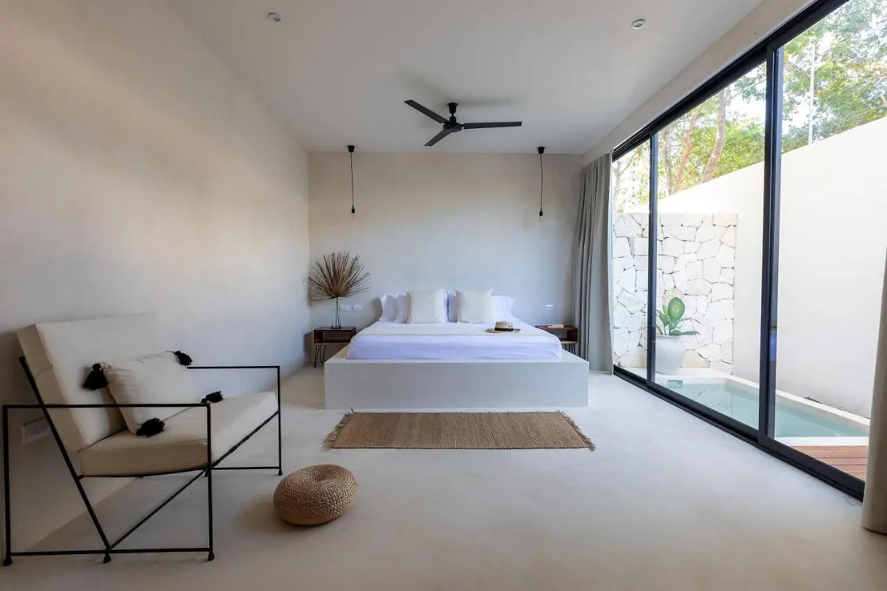 Hacienda 21, 2019 in Tulum spans 1,741.19 m2 of land with 526.36 m2 built, featuring 9 suites (including luxury, chill-out, and jacuzzi suites), a fully equipped kitchen, gym, pool, fire pit, and multipurpose room. Developed with Jerome Textier and Zepto Design and Construction.
