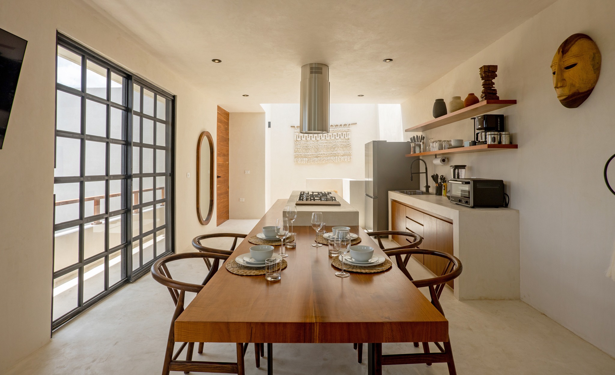 A 680 m2 mixed-use project on a 400 m2 lot, combining 2 gourmet restaurants, 2 retail spaces, a rooftop bar with panoramic views, 3 luxury studios, and designer pools. A vibrant lifestyle concept located in Tulum.