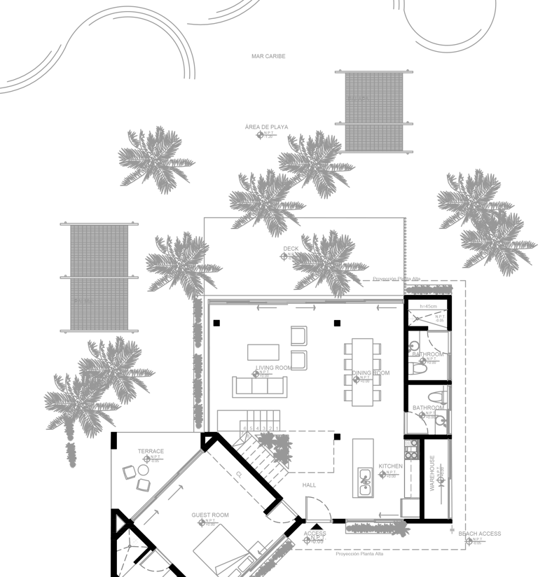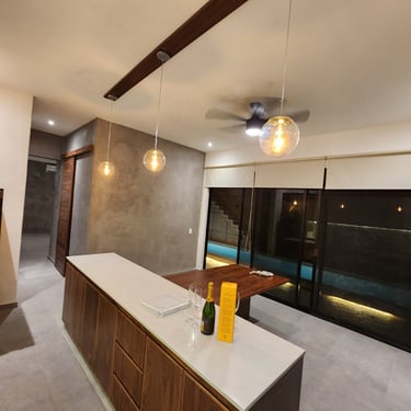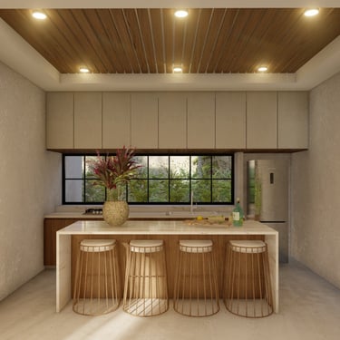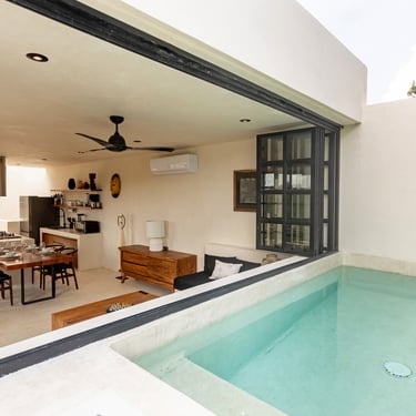 House at the downtown of tulum, builded surface of 120 SQM in a single floor, has 2 bedrooms, 2 bathrooms, living room, kitchen, utility room and pool.