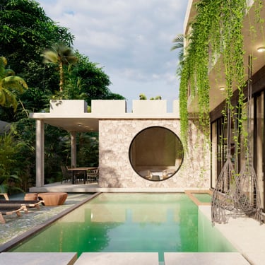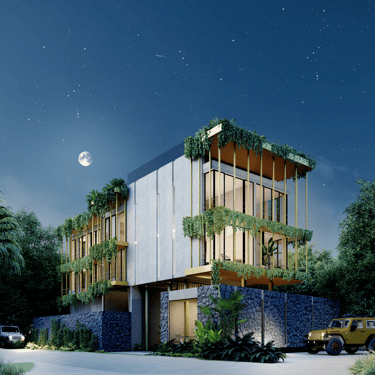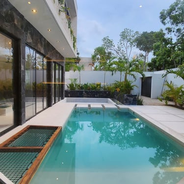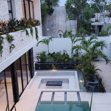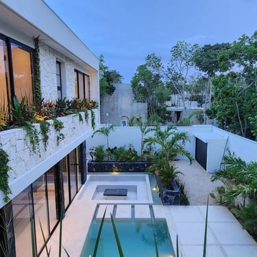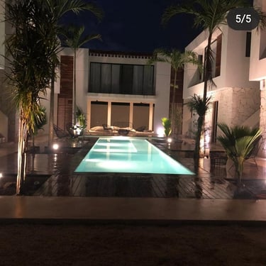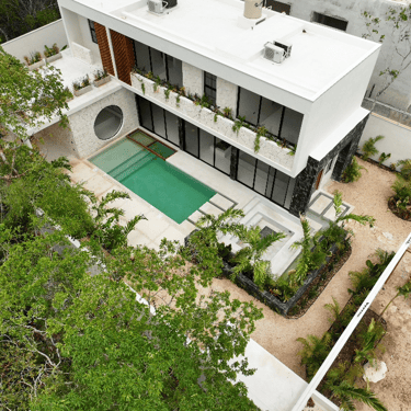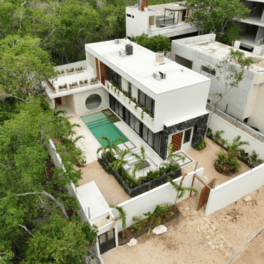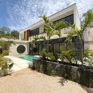 Residence with built surface of 530m2 located on the suburbs of Tulum, in the exclusive subdivision "Los arboles Tulum Green Development" has 4 bedrooms, 3 full bathrooms, dance room, solar panels, sustainable cooling system, rainwater collection , pool, covered garage for 2 cars and more...