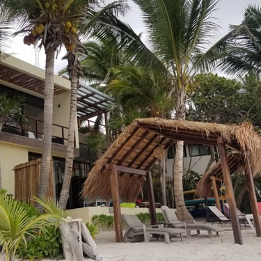 A vacation rental house on the beach with a built surface of 430SQM , located in Bahia Tanka, you can find it at www.casaplayamaya.com. It has direct access to the beach, 3 bedrooms, 4 and a half bathrooms, barbecue area, roof top and more.